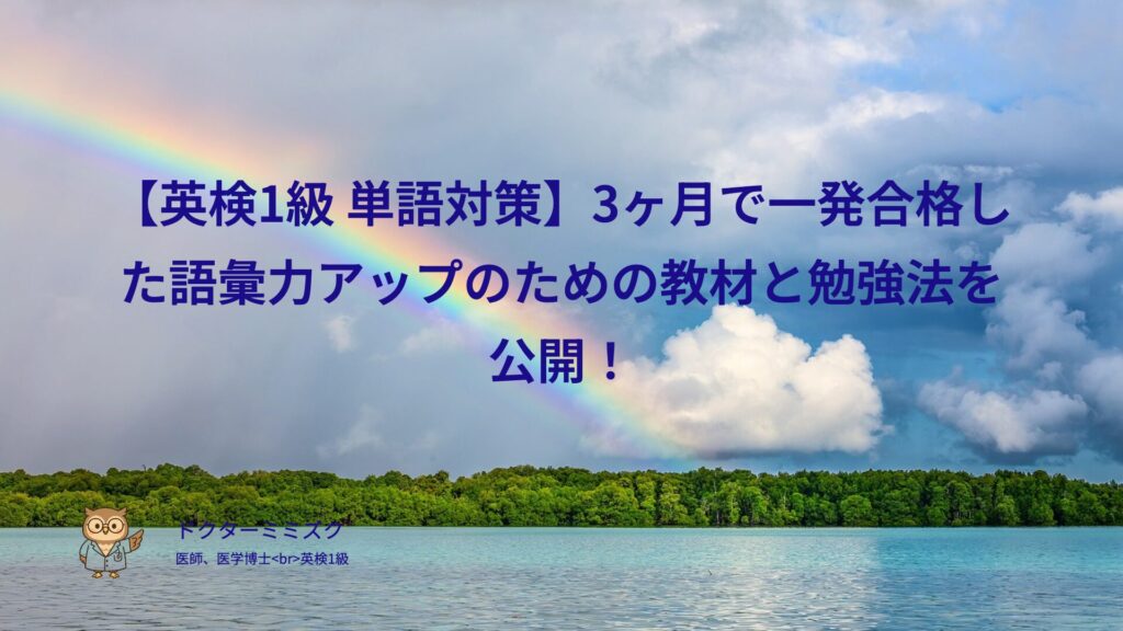 ※本記事は筆者の個人的な経験と学習内容をもとに記載しており、収益・広告目的ではありません 英検1級対策全般についてはこちらの記事も参考にしていただけたら嬉しいです。👉【英語学習】【英検1級】私が英検初受験 3ヶ月の対策で … 続きを読む 【英検1級 単語対策】3ヶ月で一発合格した語彙力アップのための教材と勉強法を公開!